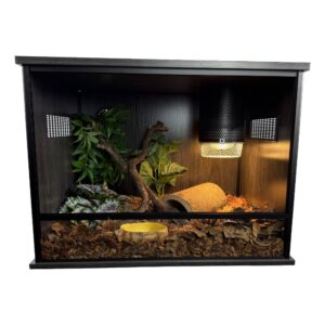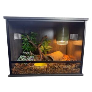 The WhitePython 4-in-1 Lamp Fixture has been engineered with a remarkably compact profile, making it ideal for both modern display enclosures and traditional wooden vivariums. When paired with the supplied flat mesh guard, the fixture stands at just 16cm tall, creating a discreet, low-impact heating solution that preserves valuable space within the enclosure.